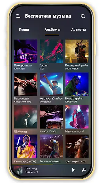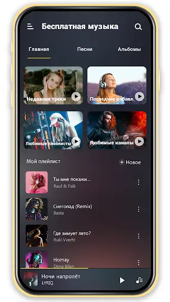 «Музыкальный плеер» — аудиоплеер для прослушивания песен. Дает доступ к музыке с онлайн-платформ, таких как YouTube, или той, что хранится в памяти без подключения к Сети. Есть разделение на секции с альбомами, исполнителями и вручную созданными плейлистами. Разрешается слушать аудиочарты или тематические подборки.