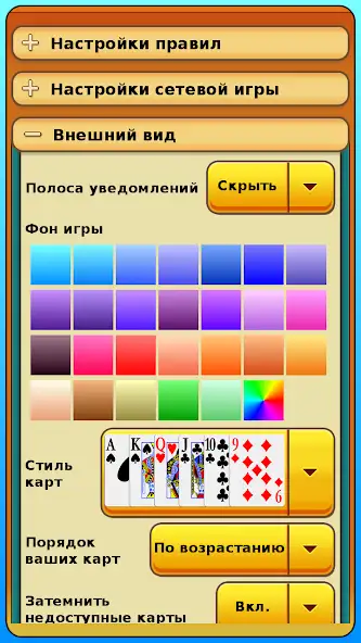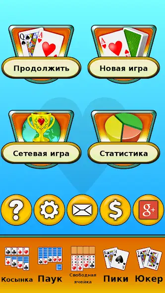 Поддерживает вертикальную и горизонтальную ориентацию экрана. Можно ставить игровой процесс на паузу, отменять ходы, играть с бонусным валетом бубей, смотреть список активных игроков, отправлять сообщения. Присутствуют пасьянсы, такие как «Косынка», «Свободная ячейка», «Пики», «Паук», «Юкер». Ведется статистика игр.
