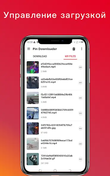 «Загрузчик видео для Pinterest» используется в целях сохранения публикаций с одноименного фото-, видеохостинга. Закачка осуществляется по ссылке. Есть интерфейс на русском языке, функции автоматической загрузки, удаления, показ прогресса скачивания. Присутствуют инструкции по использованию программы, вкладки: «Скачать» и «Мои файлы». Клипы сохраняются в альбомах. Имеются реклама, светлая тема. Загруженный контент в HD-качестве показывается как список миниатюр с названиями, размерами и доступен для просмотра офлайн во встроенном видеоплеере.