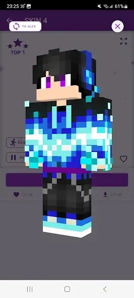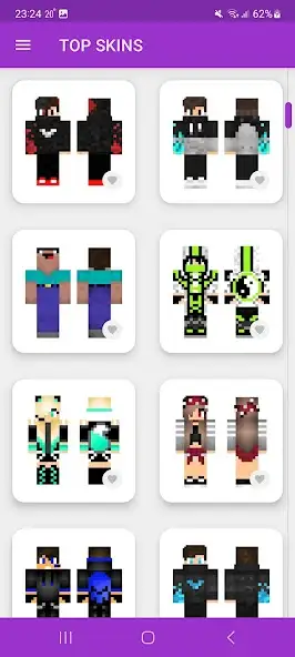«ПвП скины для Майнкрафт» — аддон, добавляющий в одноименную песочницу костюмы персонажей. Доступно создание списка избранного контента. Есть функции обратной связи и предварительного просмотра нарядов в 3D с возможностью вращения. Коллекция включает 11000 позиций, которые показываются как список миниатюр. Контент можно сохранять в галерею, устанавливать на серверах, редактировать во внешнем редакторе. Есть уведомления.