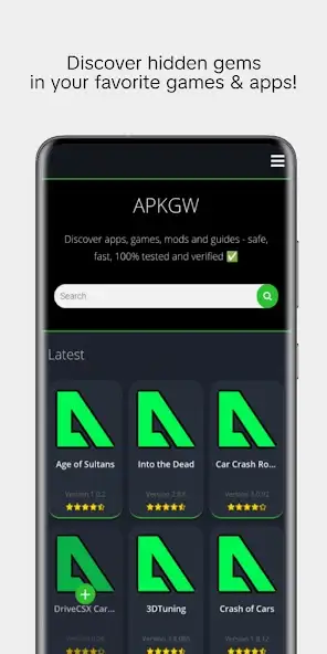 GAME MOD — каталог игровых модов для запуска экшенов, шутеров, раннеров, стратегий, RPG и другого контента. Аддоны показываются в виде списка миниатюр с названиями, датами, версиями, рейтингами. Присутствуют инструкции, руководство, обзоры и обучающие материалы. Есть темная тема, реклама, рекомендации. Можно узнавать, как получать спрятанные драгоценные камни в играх, неограниченные здоровье и способности, прочие привилегии.